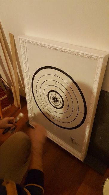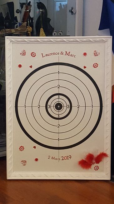 Nous avons un thème particulier pour notre mariage : le tir à l'arc. Nous n'avons pas trouvé d'idées sur les différents sites alors nous nous y sommes collé avec nos propres neurones.... Voilà le commencement de notre support : une cible Beursault....
