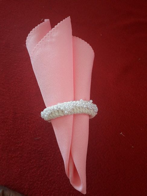 Cette fois les ronds de serviettes avec des rouleux de papier toillette vide,un petit bout de ficel et des petites perles.