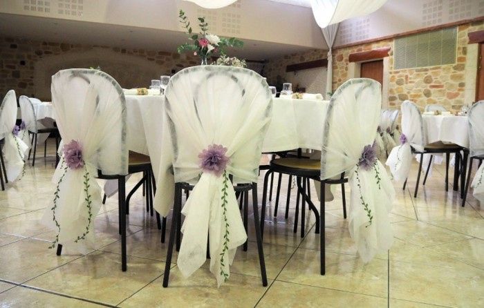 Coucou avez vous des idées pour embellir ces chaises? je ne souhaite pas mettre de housses. j'aimerais pouvoir mettre un noeud. Mais j'avoue que je ne sais ni comment ni Avec quoi les faire ...