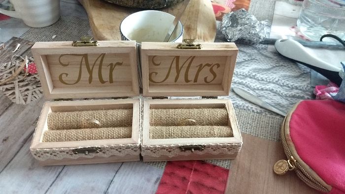 Coucou j'ai reçu mes boîtes pour nos alliances 😀 nous avons deux enfants donc je voulais deux boîtes pour pas faire de jaloux et je les adore 😍 j'ai rajouté le Mr et Mrs dans les couvercles sa rend hyper bien.. allez encore 3 mois et je pourrais les...