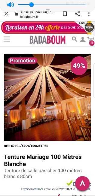 Bonjour a toutes ! J'aurais besoin de vos avis ! J'aimerais acheter mes tentures pour le plafond afin de donner le même résultat que sur la photo. C'est en intisse mais j'ai peur du rendu par rapport à du tulle ou du satin.. Avez-vous des photos du...