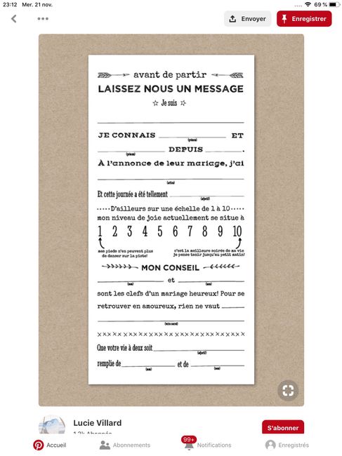 Bonjour à tous, je ne suis pas très livre d or , les mots sont toujours les mêmes dedans ( félicitations , on vous aime, bonne journée Vous êtes beaux, tous nos vœux ....). J avais donc trouvé ça sur pinterest et je trouvais ça original mais je ne...