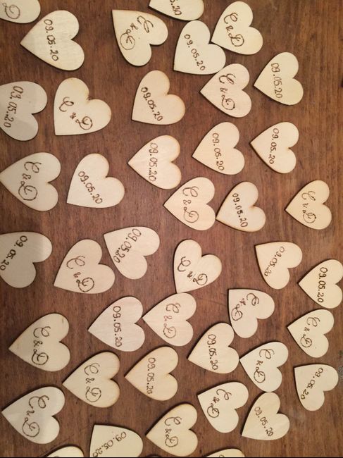 Bonjour tout le monde, Voila ma petite réalisation du jour ! Mes petits cœurs en bois que j’ai pyrogravé, il y en a 50... (25 avec la date et 25 avec nos initiales), je les ai fait en recto verso en plus. Contente et fière qu’ils soient finis ! ...