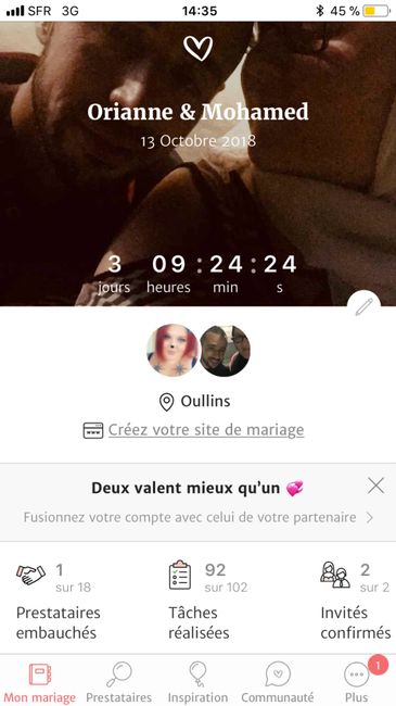 À combien de jours du mariage êtes vous ? Moi je suis à plus de 900 jours, j'ai encore le temps ! J'ai hâte de commencer l'organisation de notre renouvellement de voeux ! Et vous ? Montrez moi vos compteurs !