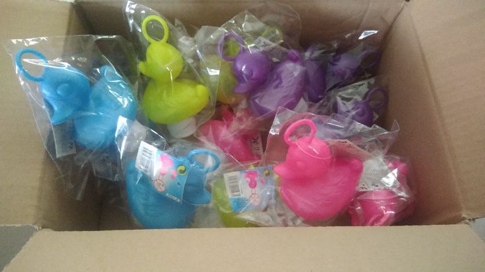 Hello les filles! Je viens de recevoir ma commande de canards pour la pêche aux canards! On prévoit des jeux dehors et dont ça. Ils ont l air trop génial 😊 Faut que je teste si ils flottent tous!