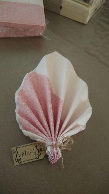 Bonjour les filles! Je commence mes pliages de serviette et j aimerais votre avis. L étiquette où c est inscrit merci, vous trouvez ça comment? En trop? Débile? Incompréhensible? Je la met ou je laisse uniquement le rafia ? Merci pour celles qui...