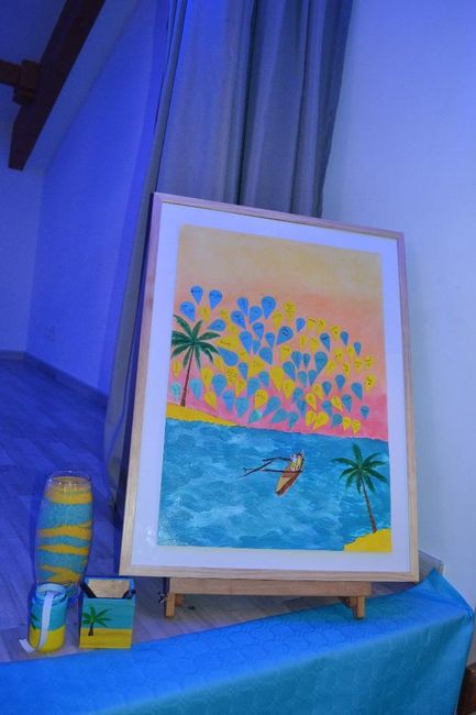 Pour quelques idées, je vous met en photo notre arbre de vie et le résultat de notre vase de la cérémonie du sable qui a eu un franc succès car personne dans la salle n'en avait entendu parler. Moment d'émotions garantis. notre arbre de vie