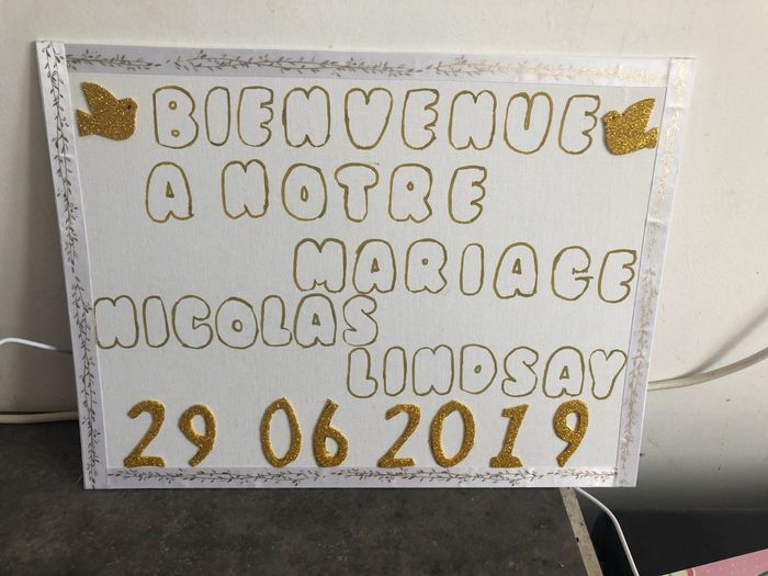 Il y a 2514 joursCoucou à tous et toutes et voilà à j-20 du mariage j ai fini mon panneau de bienvenue j’ai encore plus hâte d’y être theme blanc , or et colombe
