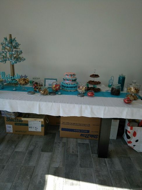 Parce que nous sommes de grands gourmands et que en se mariant le matin, avec un cocktail-buffet à midi et repas le soir, il fallait pouvoir répondre aux petites faims de l'après-midi, nous avons décidé de préparer une table aux gourmandises. Table...