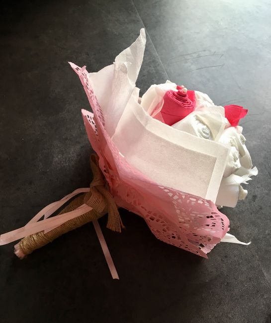 Aujourd’hui comme je m’ennui un peu j’ai décidé d’essayer de faire un bouquet pour ma demoiselle d’honneurs qui est ma belle-fille de 16 ans. s’est mon premier, vous en pensez quoi ? j’espère qu’il va lui plaire ☺️
