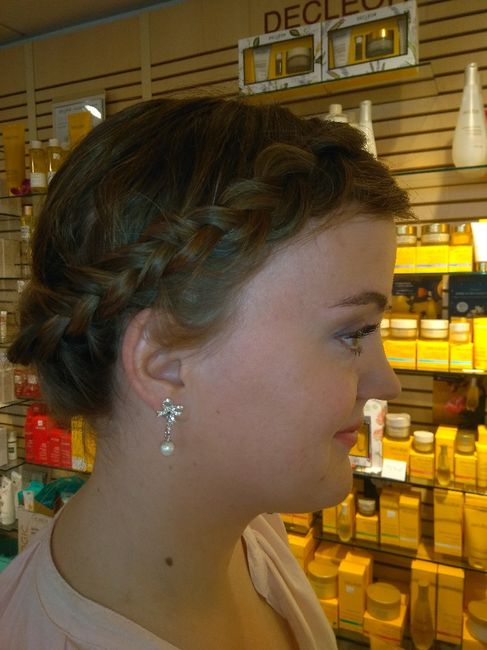 Coucou Je suis maintenant a deux chiffre et l'essaie robe coiffure et maquillage sont fait. Voici la coiffure Qu'en pensez vous?