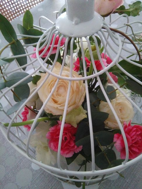 Coucou à toutes, Nous avons pu réaliser des tests pour nos centre de tables. Le premier, le coloris des fleurs trop sombre vieillissait trop la déco. Et les fleurs n'ont pas tenu sur 72h... Premier essai Pour le second essai, j'ai modifié l'éclairage...