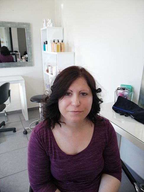 Salut les filles ! Alors moi j'ai fais un deuxième essais coiffure ( le premier ne m'avait pas convaincu du tout donc pas montré) en fait c'est ma. Coiffeuse habituel qui m'as fait cet essais et le premier m'a. Coiffeuse du mariage ( je me marie pas...