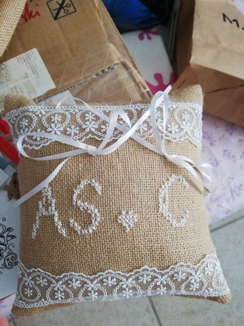 Et voilà nôtres coussin pour les alliances réalisé par ma belle mère. Je vais réduire un peu la longueur des rubans d'alliances mais je le trouve beau. Je suis contente, une chose en plus de faitz