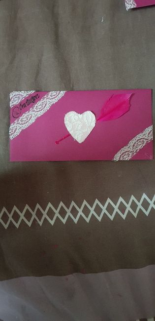 Mon chéri a voulu rajouter un petit plus . Une plume qui transperce le coeur . Il veut coûte que coûte respect notre thème plume et dentelle 😂 Q'en pensez vous ?