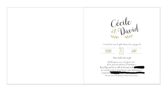 Il y a 2706 joursBonsoir à tout le monde, Je vous lis beaucoup et je n'ai pas l'habitude de publier mais je voulais partager ça avec vous! Nous avons reçu nos faire part et sommes très satisfait du résultat. Nous les avons commandés sur faire part etcetera, je suis...