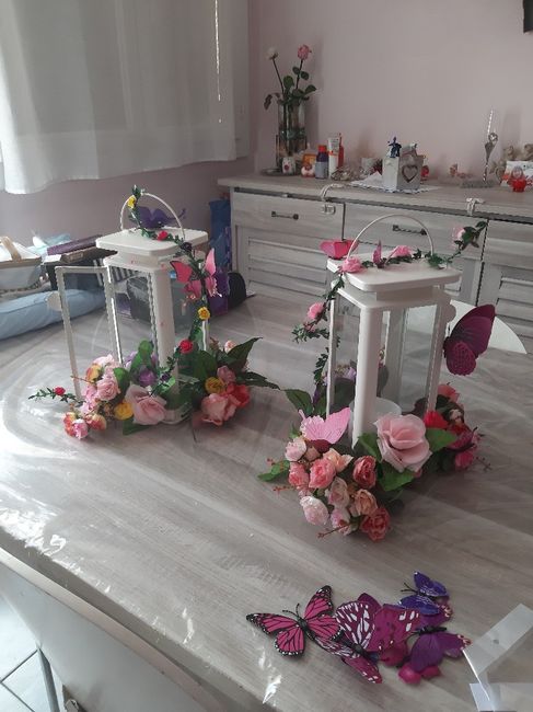 Coucou les filles! Alors à moi de vous montrer mes premiers DIY, j'ai fais que deux centres de table (sur 9ou 10 mais se seront pas tous les mêmes ) pour l'instant, sur les 2 cages à oiseaux il manque un jolie papillon mais pas encore reçu.. j'ai...
