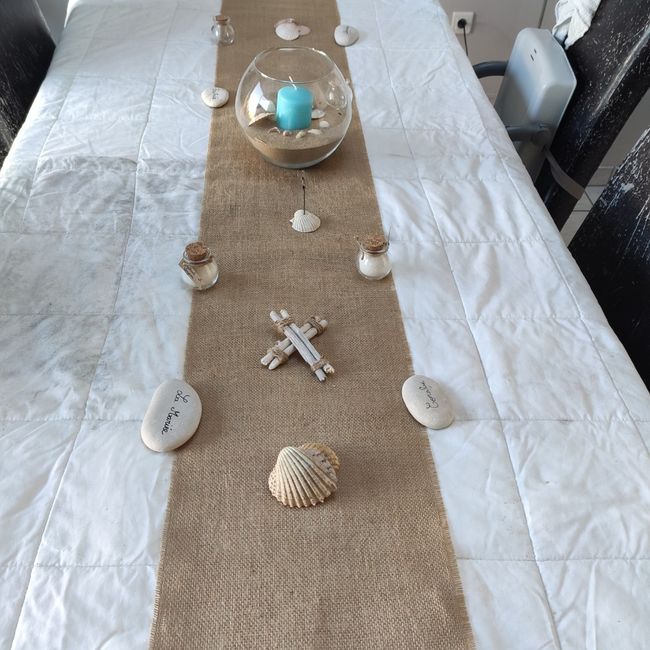 Bonjour à toutes et tous, Mon mariage est prévu le 07/08/2021, report de l'année donc quoi qu'il arrive je serais Madame cette année.... J'ai fais mon premier essai de table pour me rendre compte des manquants et oublis, si la photo ne coquillage il...