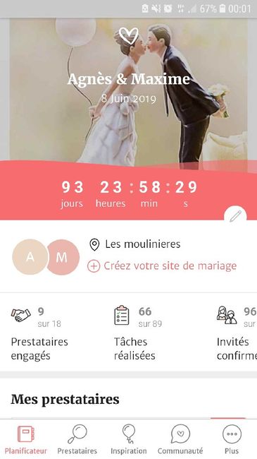 Voilà le jour que j’attends depuis mon inscription sue le site , que le chiffre 1 ( jour) soit inscrit sur le décompte ! On y est presque ,j’ai hâte ,nous sommes arrivés sur le lieu du mariage en attendant la décoration de la salle demain, pas de...