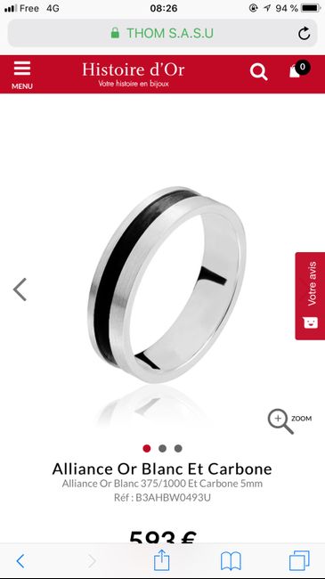 Hello les filles Mon chéri a repérer le style d’alliance qu’il aime. Couleur du métal blanc, donc soit en argent ou en or blanc. Et avec une ligne noire au milieu absolument. On a vu ces deux modèles chez histoire d’or avec une préférence pour le...
