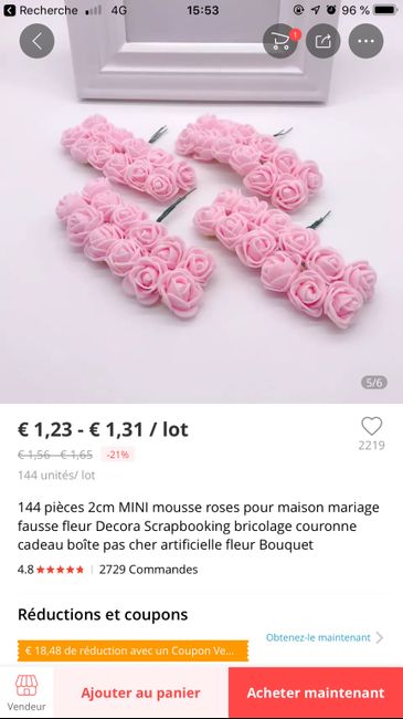 Bonjour 😊 Je souhaite décorer mes centres de tables avec ce genre de boules de roses artificielles. A l’unité la boule coute 16,90€... En sachant que je veux mettre une boule par table dans un vase style martini Ça me reviendrait trop cher d’acheter...