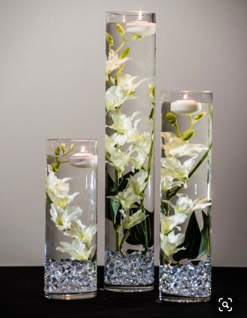 Bonjour J’ai acheté des petits vases cylindriques ainsi que des bougies flottantes pour mettre sur les tables à mon mariage. Voici mon inspiration en photo. 1 vase cylindrique Rempli d’eau Avec dans le fond des perles / pierres dorées Et tout en haut...