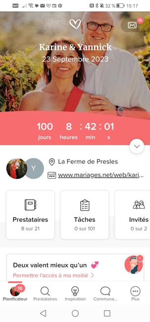 Bonjour tout le monde !! Tic-tac, ton grand jour n'est plus très loin ! Prêt(e)s à célébrer cette journée si spéciale ?💍 Tu dois certainement compter les jours et Mariages.net a trouvé le meilleur outil pour que tu ne l'oublies pas. Le compte à...