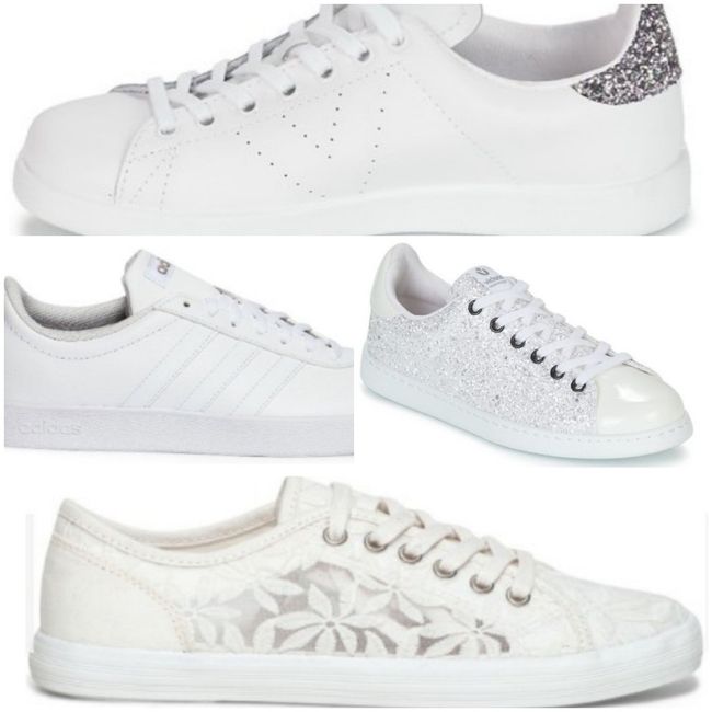 Coucou ! Je galère pour choisir mes chaussures de mariage. Je pense partir sur des baskets blanches car je ne porte jamais de talons et pour éviter que les retouches sur ma robe ne conviennent qu'aux talons et pas aux chaussures plates. J'hésite...