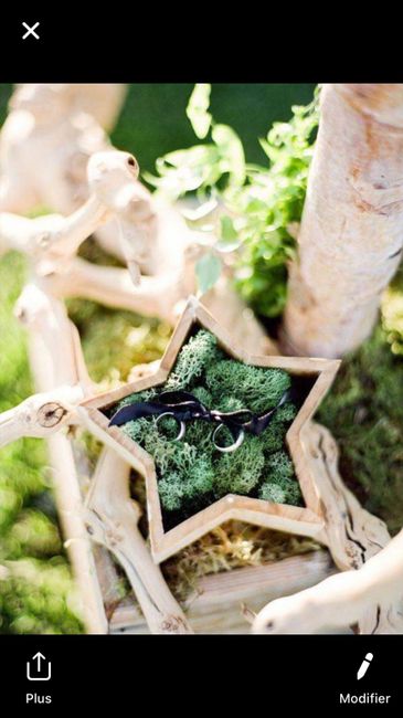 Voilà l’idée que ma sœur m’a trouver pour mon mariage étant donner que pendant la cérémonie laïque c’est mon neveu qui aura 6 ans qui aura le plaisir de tenir les alliances notre thème étant l’amour sous les étoiles