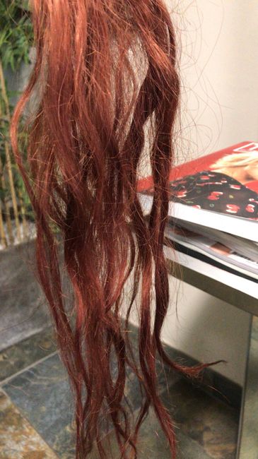 Voilà mes rajouts qui n’ai pas du tout la même couleur que mes cheveux. C exactement la même coloration mais sa n’est pas du tout sorti comme on le voulais. Donc je cherche une autre coiffure. La deuxième photo est la longueur une fois que g fait mon...