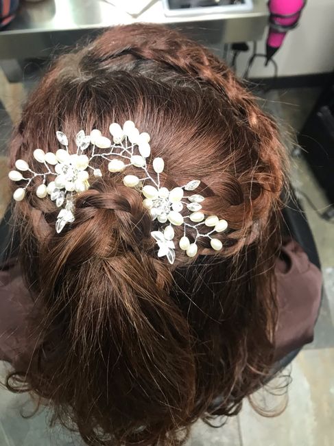 Cc les filles voilà mon essaie coiffure aujourd’hui. J’ai fais aussi l’essai maquillage mais g oublier de le prendre en photo trop stressée 😂😂. J’hésite à couper la mèche de devant de peur qu’apres le marché galère à les coiffer g les cheveux frisés...
