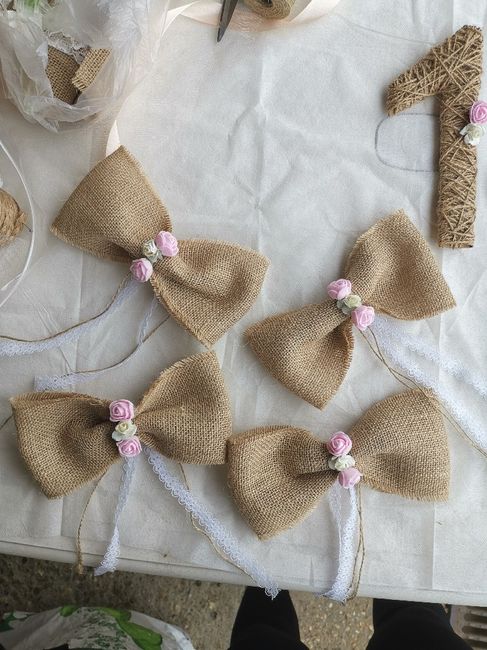 Hello la commu ! En ce premier jour de vacances j'ai enfin fini mes 80 nœuds de voitures pour mes invités Il ne me manque plus qu'à trouver un panier en osier pour les déposer dedans. J'ai aussi commencé mes panneaux directionnels pour les mettre...
