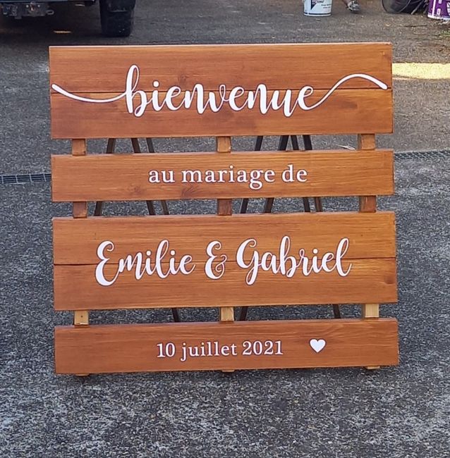 Bonjour, Nous sommes entrain de réfléchir à notre panneau de bienvenue qui sera fait en palette. 1 grosse + 1 petite juste au dessus. On sait déjà ce que l’on va inscrire par contre en terme de couleurs on est dans le doute. Notre thème couleur c’est...