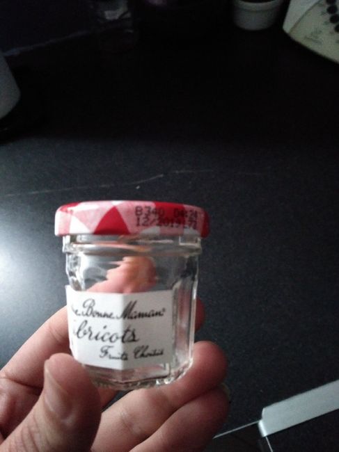 Je vais récupérer tout ces minis pots de confiture , les customiser et les recycler en salière et poivrière pour mettre sur les tables 😉 .