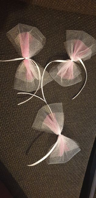 Ça y est j'ai commencé à faire les noeuds en tule. Dégradé de roses , qu'en pensez vous ?