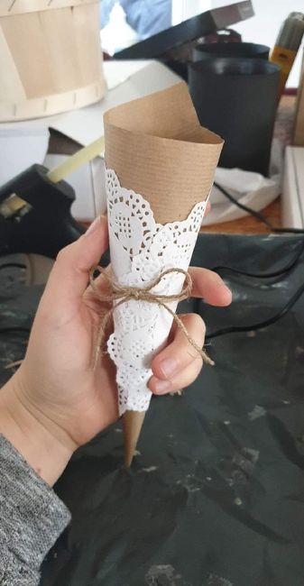 Pour celles qui avait vu mon précédent post , j'avais fais des cones avec les napperons blanc mais ils étaient tout petit et ça ne me plaisait qu'à moitié, après plusieurs essai on a enfin trouvé !