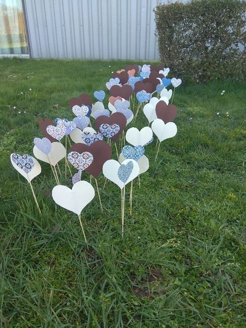 Salut ! J'avais envie de partager avec vous mon essai en réel de pic coeur pour ma ceremonie laique. J'en avais déjà réalisé plus de 300 avec mes parents. Et hier ce sont ma temoin et ma demoiselle d'honneur qui sont venus m'aider. On a bien avancer....