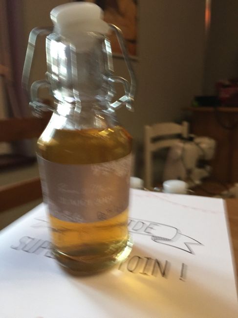 Ça y est la moitié est faite!! Cest une petite liqueur qui s’appelle le 44 . Il y a une orange , 1 litre de calvados , 44 grains de café plantés dans l orange , 44 morceaux de sucre à laisser macérer pendant 44 jours . Tres bon ! Très parfumé ! 😋