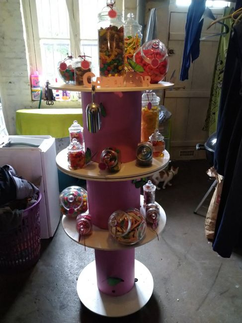 Notre candy bar est terminé !! A barrer de la chek list !! 😁 Bon on se rend pas trop compte avec le bazar de la cave derrière.... mais ça donne un aperçu quand même.