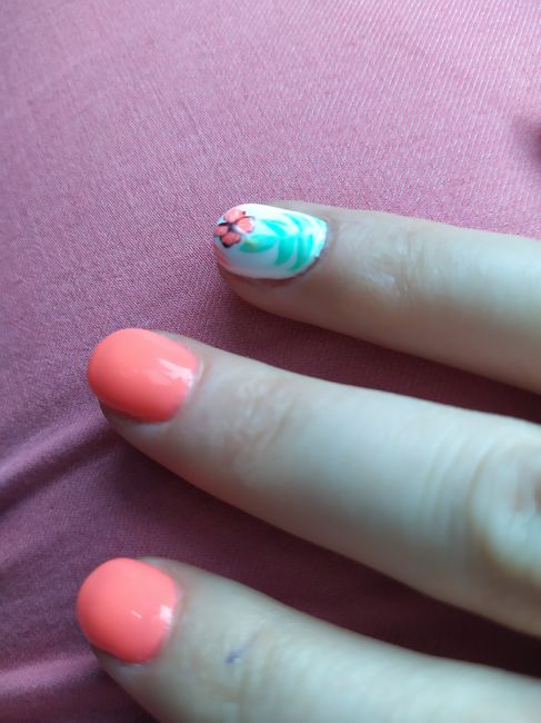 Cc à tous! J'aurais besoin de vos avis, pour notre mariage sur le thème tropicale, je voulais une manucure tout en couleur. Aujourd'hui j'ai fait mon premier essai, qu'est ce que vous en pensez ?