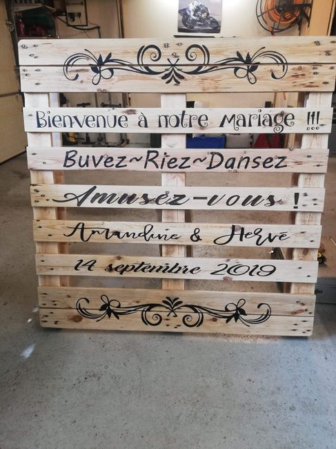 Bonjour à toutes les FM Voilà c’est la dernière ligne droite ,D’ici quelques jours nous nous dirons OUI ... Aujourd’hui nous avons mis en place toute notre déco .. Je vous montre notre dernière création..On est assez content du résultat.