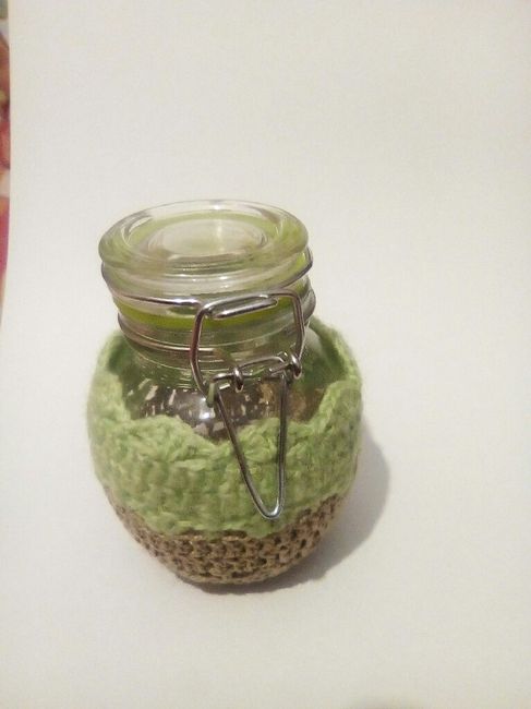 Voilà tous les pots à dragées sont terminés, réalisation faite main au crochet par mon chéri 😊.