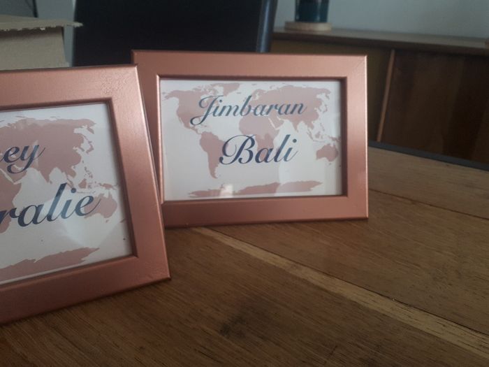 Bonjour a toutes! Je ne sais pas si c'est votre cas mais depuis la décision du report ,je modifie des décos qui au final ne me convenait pas tant que ça. Aujourd'hui c'est les cadres noms de tables. J'ai fait faire les petites cartes sur etsy, je les...