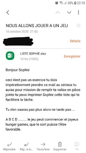 Ap l'annonce de notre mariage, qui se fera avec juste parents et temoins moral au plus bas et la je reçois ce message...evjf en préparation...la semaine dernière j'ai eu le droit a un restaurant surprise pour la partie 1 car covid oblige elles aussi...