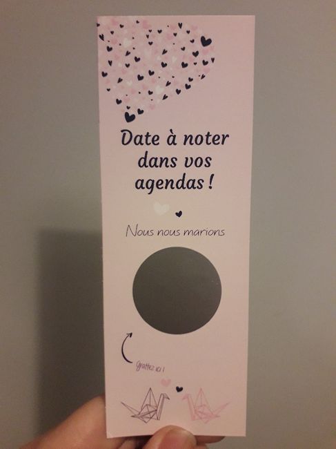 Hello tout le monde ! Je vous partage avec fierté mon Save The Date : un marque-page aux couleurs de notre mariage, avec une pastille à gratter pour découvrir la date ! Format très sympa et pratique à mettre sur son frigo pour ne pas oublier Save...