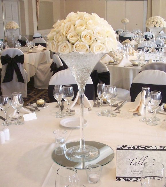 On a trouver 😍 Coup de coeur de Monsieur en plus 😊 Centre de table vase martini 70cm avec roses blanches, billes d’eau transparente et led pour un rendu rouge comme notre thème. Mon papa commence déjà à me faire peur il me dit imagine on tape dans la...