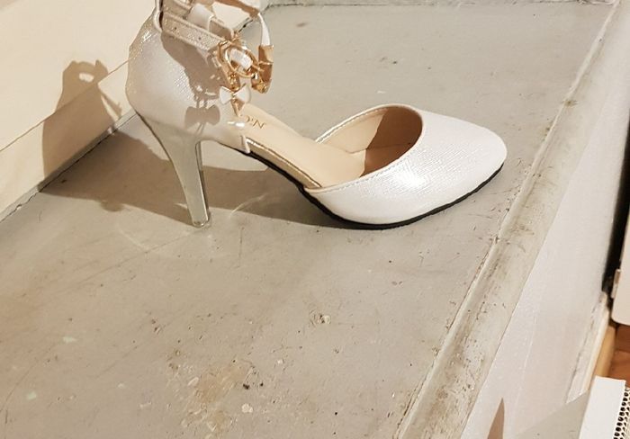 Bonsoir les filles . Je viens vous montrer mes chaussures pour le jour J . Qu'en pensez vous ? Bon il faut que je coupe un peu la bride car mes chevilles sont trop fines ^^ Maintenant plus qu'à les porter à la maison car les talons et moi sa fais 2...
