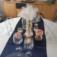 Il y a 2404 joursCoucou, voici mes premiers essais pour les centres de tables, sur un thème gatsby un peu revisité qu'en pensez vous ?