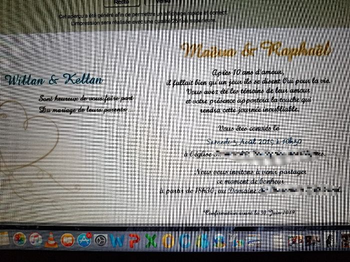 Coucou les filles !! J'ai reçu mes faire-parts et je voulais le partager avec vous. Je les ai commandé sur fairepartmoinscher.com c'était simple je trouve. Il y a une erreur, j'ai demandé une relecture et malgré tout elle est passé inaperçu mais ils...