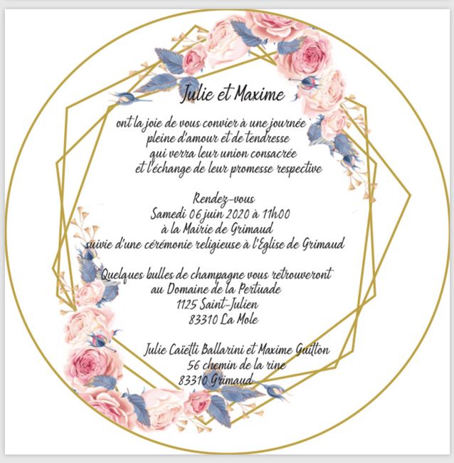 Coucou la toile je suis en train de réfléchir aux faire part (en faite quand j’ai une idée je le fais de suite sinon je change toutes les 30 secondes) et j’ai fait cet exemple est ce que vous pouvez me dire ce que vous en pensez? Sachant que que mon...